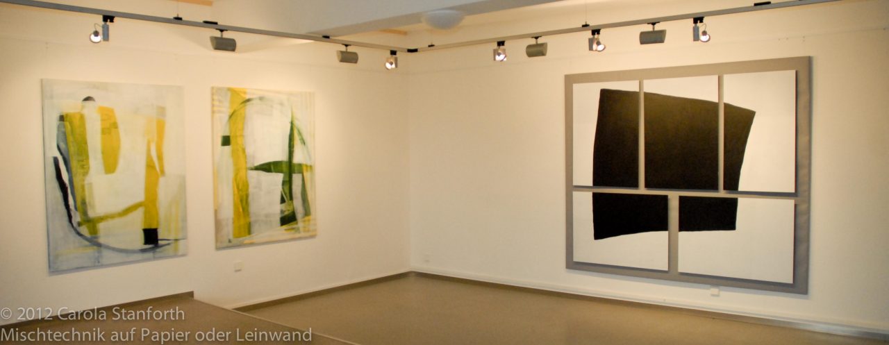 Die Vielschichtigkeit der Betrachtungsweisen eines Fotos bildet die Basis der Arbeiten von Carola Stanforth. Dabei benutzt sie Acryl, Öl, Mischtechniken und Collagetechniken sowohl auf Leinwand wie auf Papier.